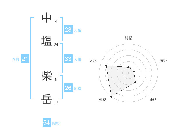 中塩 柴岳さんの総格は54画の1点!
