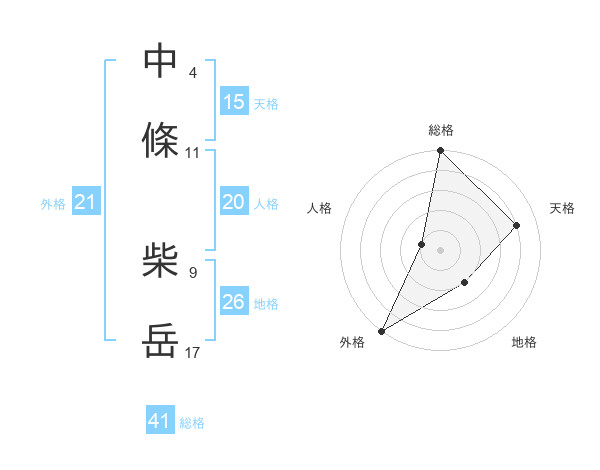 中條 柴岳さんの外格は21画の5点!