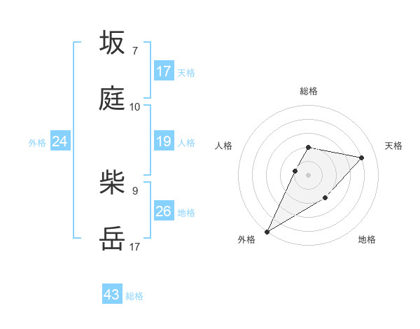 坂庭 柴岳さんの外格は24画の5点!