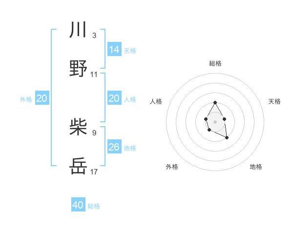 川野 柴岳さんの総格は40画の2点!