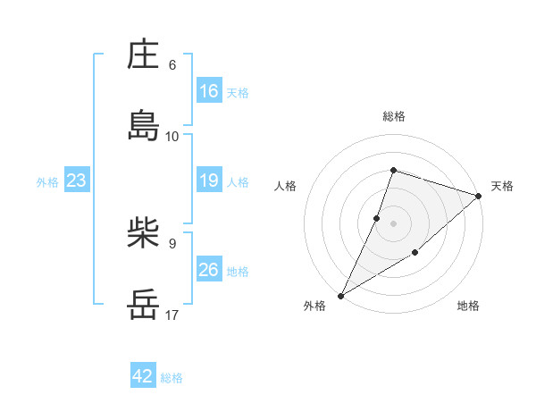 庄島 柴岳さんの外格は23画の5点!