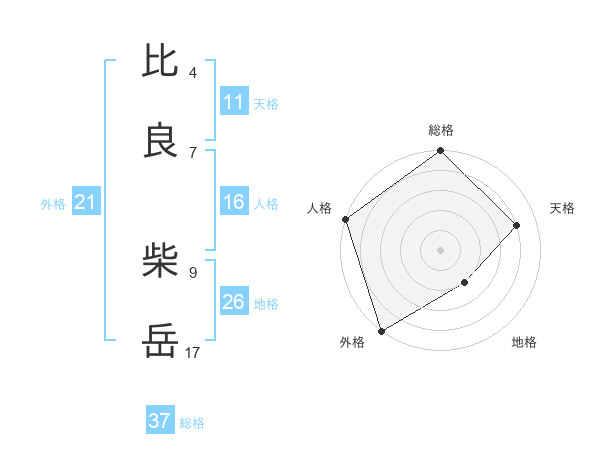 比良 柴岳さんの総格は37画の5点!