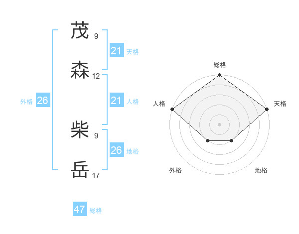 茂森 柴岳さんの人格は21画の5点!