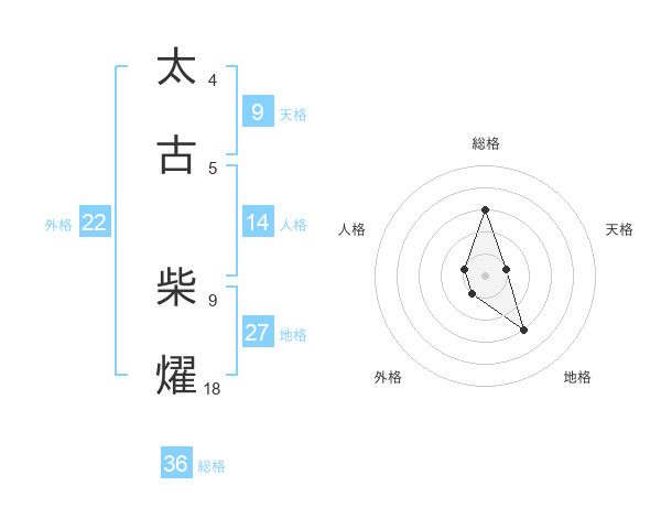 太古 柴燿さんの総格は36画の3点!