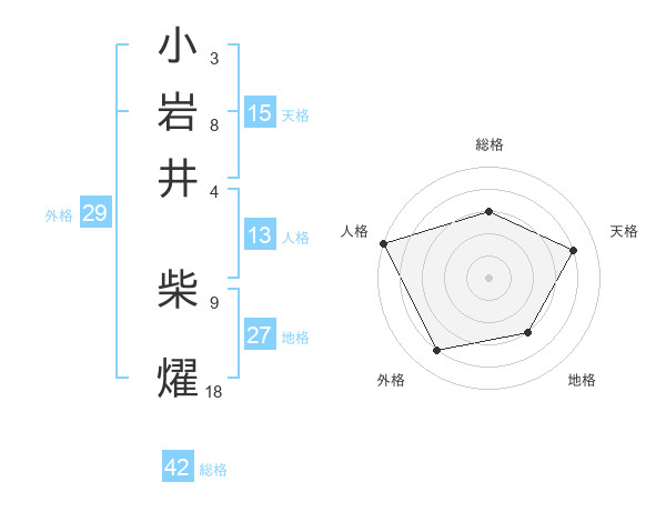 小岩井 柴燿さんを姓名の画数から五運を鑑定