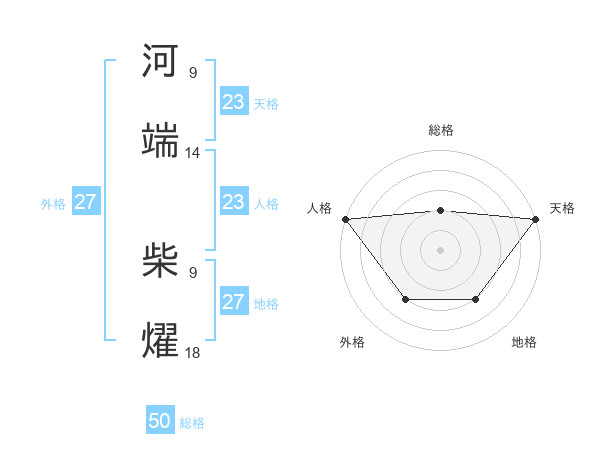 河端 柴燿さんの総格は50画の2点!