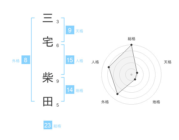 三宅 柴田さんの総格は23画の5点!