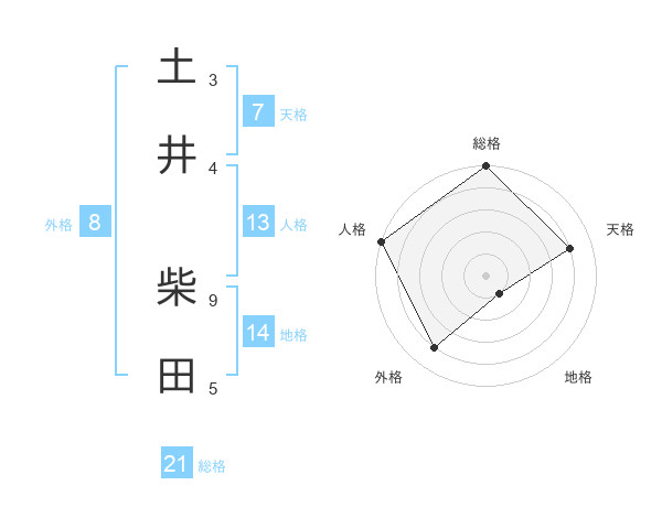土井 柴田さんの総格は21画の5点!