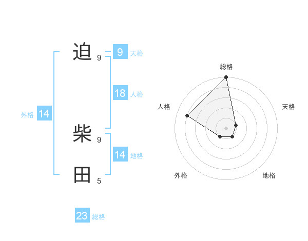 迫 柴田さんの総格は23画の5点!