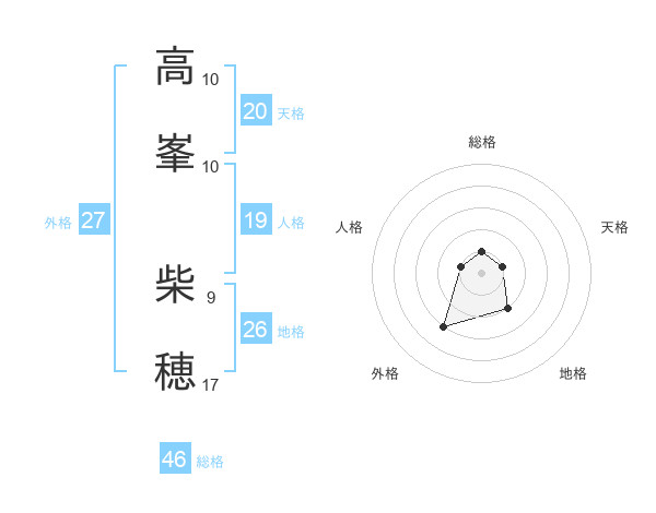高峯 柴穂さんを姓名の画数から五運を鑑定