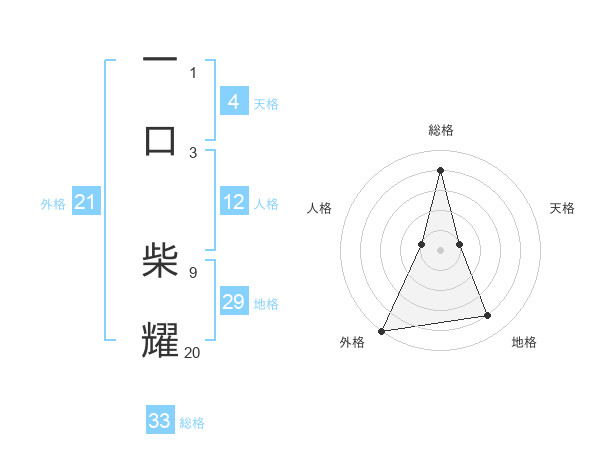 一口 柴耀さんの総格は33画の4点!