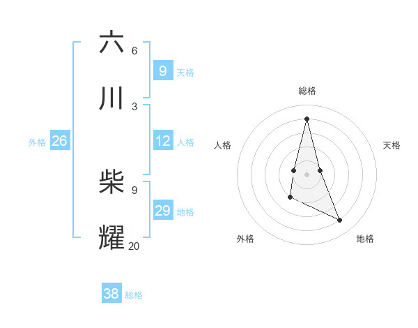 六川 柴耀さんの総格は38画の4点!
