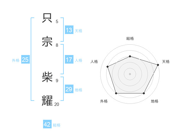 只宗 柴耀さんの天格は13画の5点!