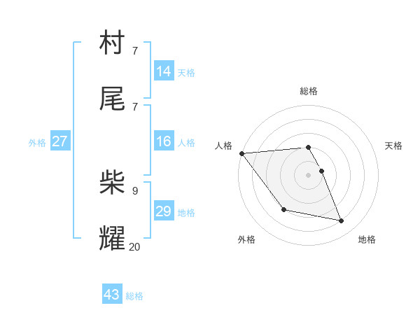 村尾 柴耀さんの総格は43画の2点!