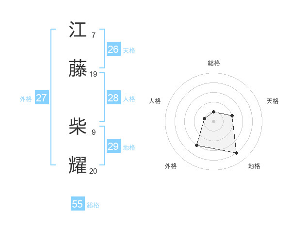 江藤 柴耀さんの総格は55画の1点!