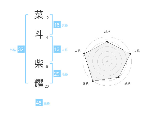 菜斗 柴耀さんの総格は45画の4点!