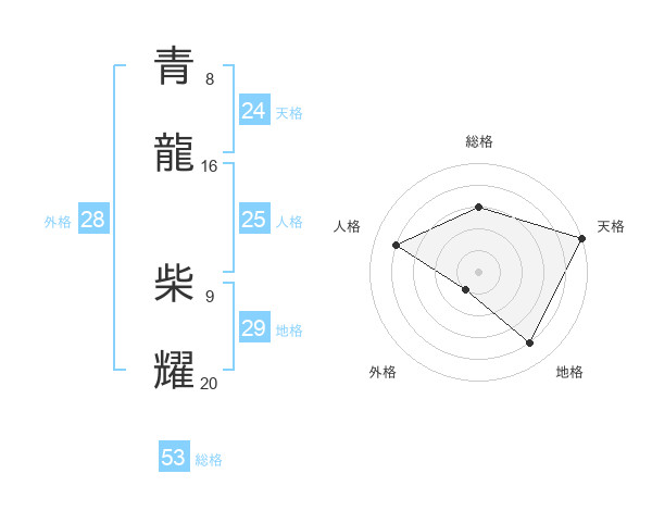 青龍 柴耀さんを姓名の画数から五運を鑑定