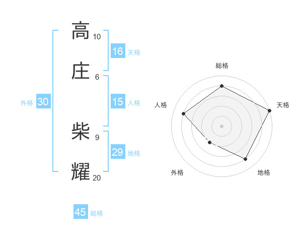 高庄 柴耀さんを姓名の画数から五運を鑑定