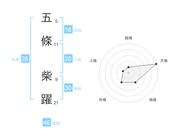 五條 柴躍さんの天格は16画の5点!