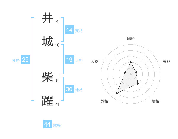 井城 柴躍さんの総格は44画の2点!