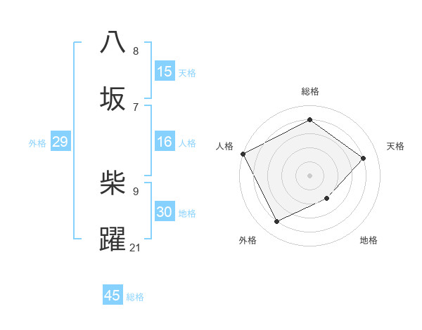 八坂 柴躍さんの総格は45画の4点!
