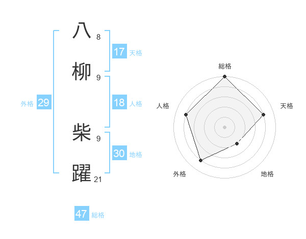 八柳 柴躍さんの総格は47画の5点!