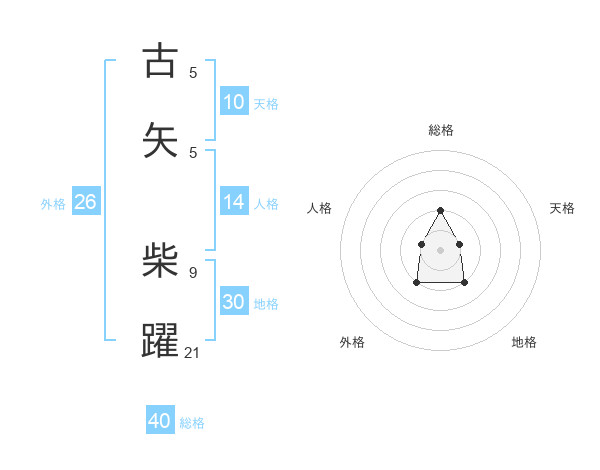 古矢 柴躍さんを姓名の画数から五運を鑑定