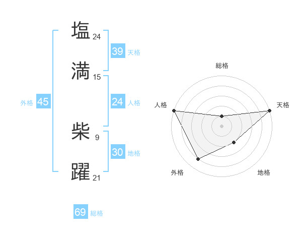 塩満 柴躍さんを姓名の画数から五運を鑑定