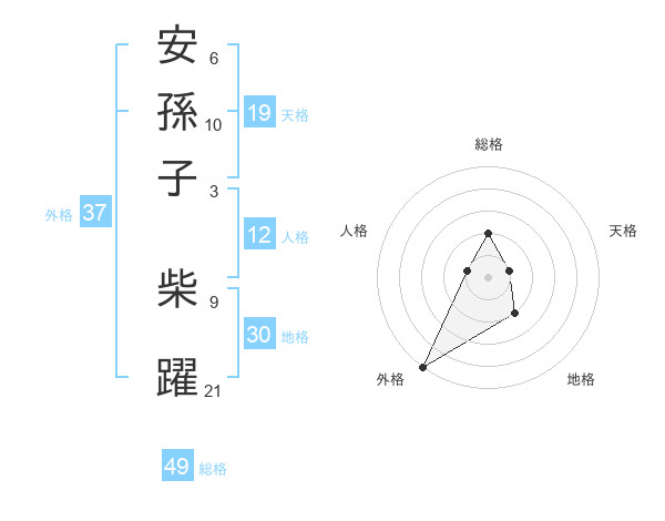 安孫子 柴躍さんの外格は37画の5点!