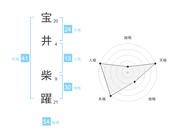宝井 柴躍さんの天格は24画の5点!