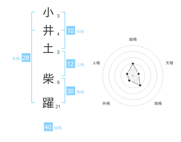小井土 柴躍さんの総格は40画の2点!