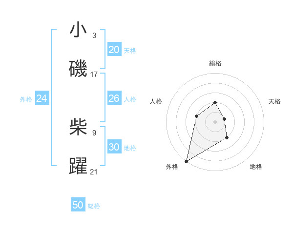 小磯 柴躍さんの天格は20画の1点!