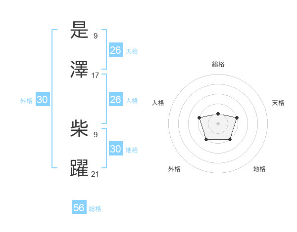 是澤 柴躍さんを姓名の画数から五運を鑑定