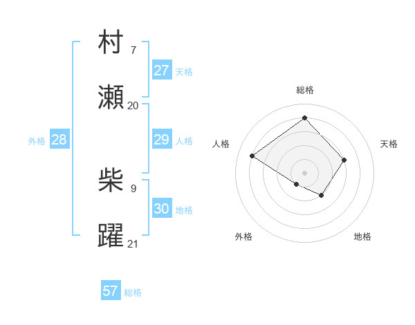 村瀬 柴躍さんを姓名の画数から五運を鑑定