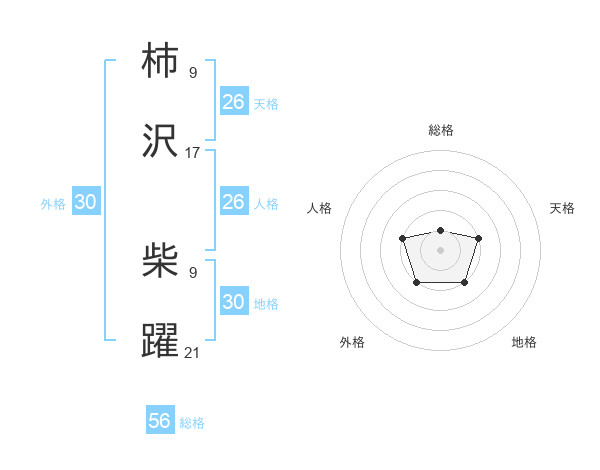 柿沢 柴躍さんの総格は56画の1点!