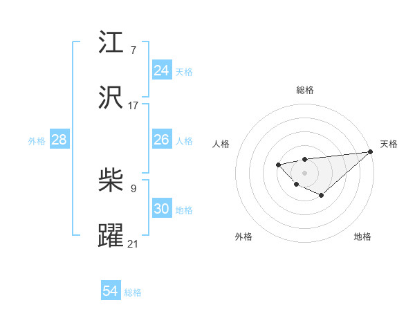 江沢 柴躍さんの天格は24画の5点!