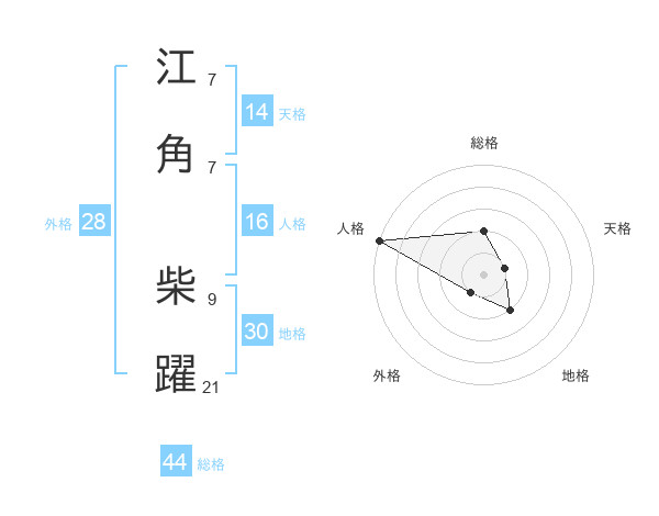 江角 柴躍さんの総格は44画の2点!