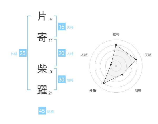 片寄 柴躍さんの総格は45画の4点!