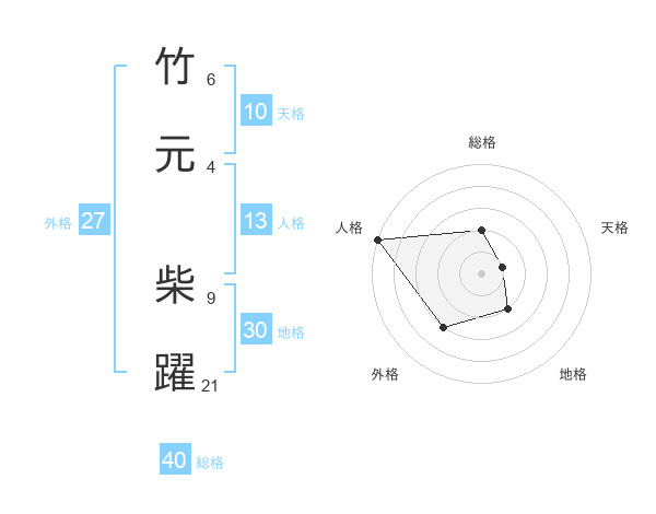 竹元 柴躍さんの総格は40画の2点!
