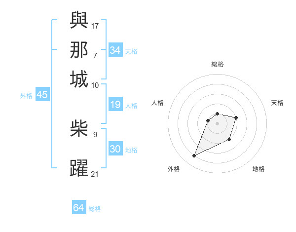 與那城 柴躍さんを姓名の画数から五運を鑑定