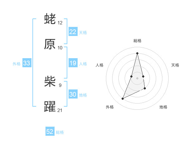 蛯原 柴躍さんを姓名の画数から五運を鑑定