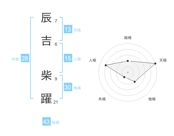 辰吉 柴躍さんの総格は43画の2点!