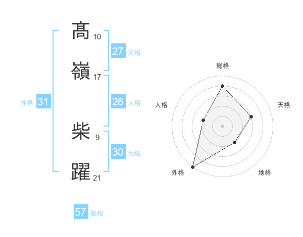 髙嶺 柴躍さんの総格は57画の4点!