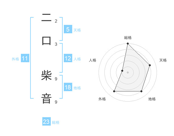 二口 柴音さんの総格は23画の5点!