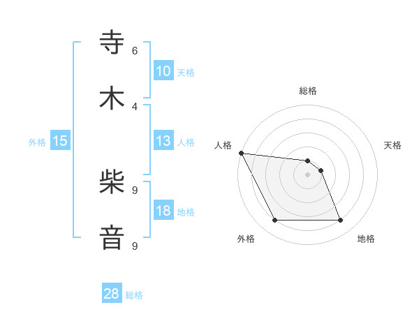 寺木 柴音さんの総格は28画の1点!