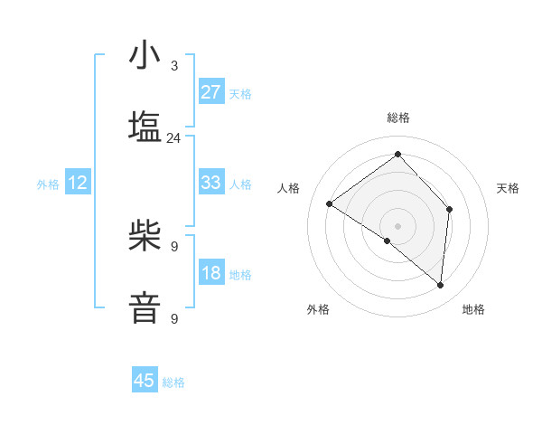 小塩 柴音さんを姓名の画数から五運を鑑定
