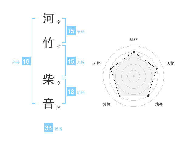 河竹 柴音さんの総格は33画の4点!