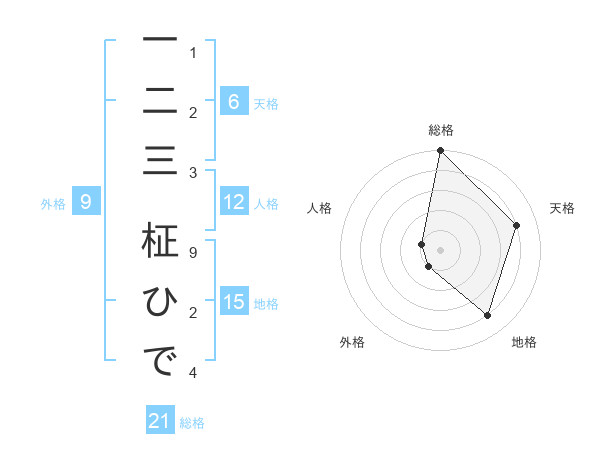 一二三 柾ひでさんの総格は21画の5点!