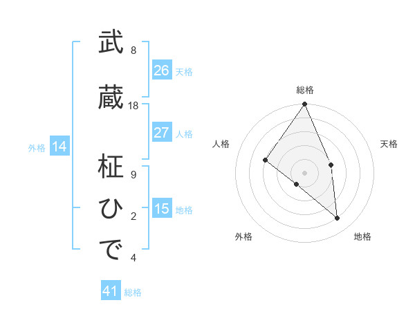 武蔵 柾ひでさんの総格は41画の5点!