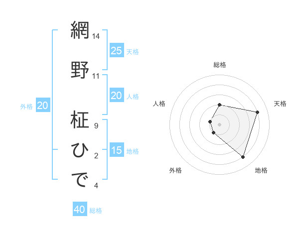 網野 柾ひでさんの総格は40画の2点